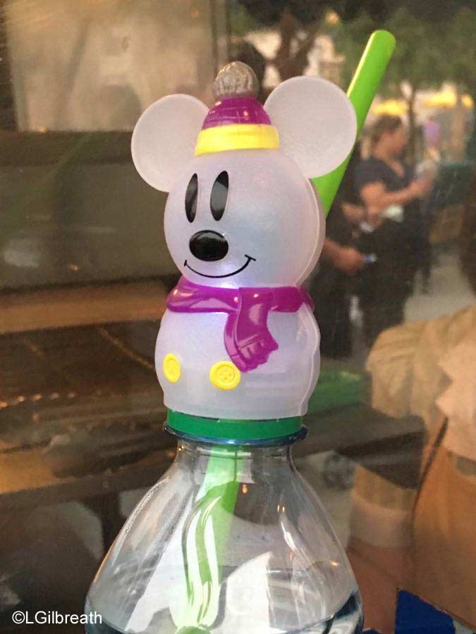 There’s also a Snowman Mickey Bottle Topper with straw for $6.50 – bottled beverage not included. These seemed to be available at locations that sell only bottled beverages, such as churro carts.