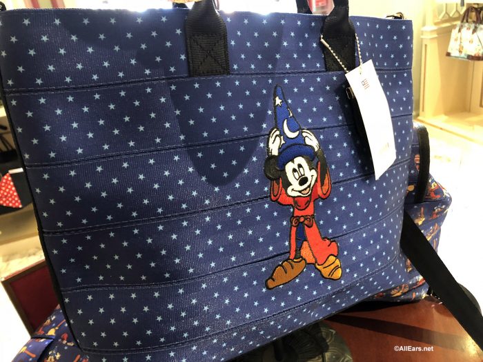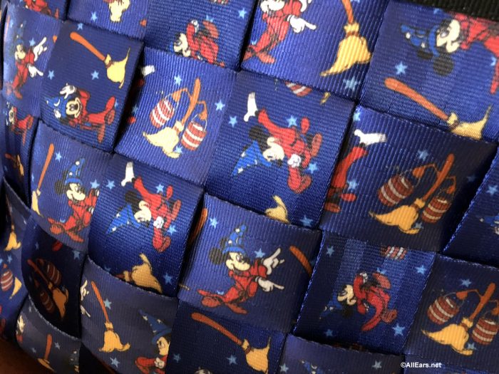 The Ring Tote has Sorcerer Mickey on one side (looking oh-so-cute), and a water bucket-toting broomstick on the other side. In addition to finding these in the Magic Kingdom, we also spotted this online on Harveys’ Website.
