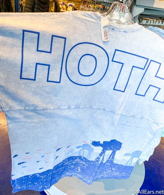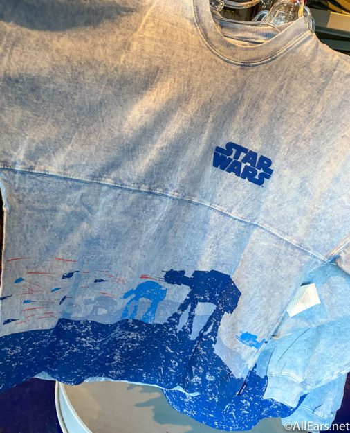 Now you can celebrate the rebel victory on Hoth with this new spirit jersey from Star Traders in Disneyland Park and at World of Disney in Downtown Disney for $69.99. One the front we get the profile of the iconic AT-AT walkers and the rebel ships defending the Hoth base.
