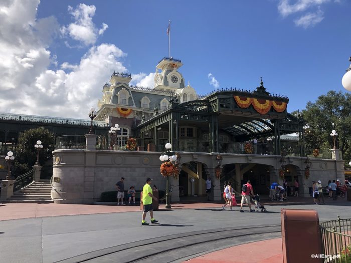 We’re starting our tour at the Main Street Station for the Walt Disney World Railroad. As you know, TRON construction in Tomorrowland has halted circle tours of Magic Kingdom, but nothing can detract from the iconic station.