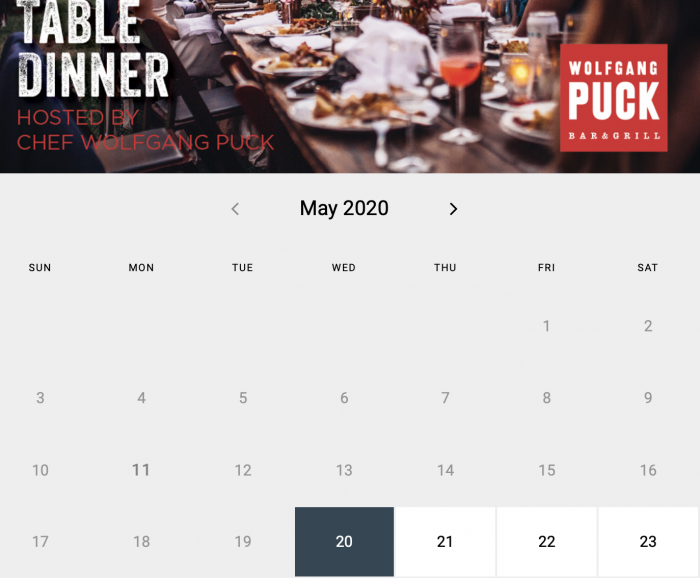 It appears that Wolfgang Puck Bar & Grill will be re-opening on May 20th along with the rest of Disney Springs. Currently, the restaurant is taking reservations through its website for the date.