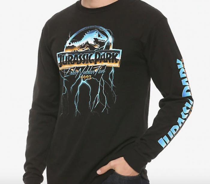 Buuut, we also can’t help but throw things back to the original! And, we’re cuing the Jurassic Park theme since we’re going on a tour of Isla Nublar wearing the Jurassic Park Long Sleeve Shirt (that looks like a concert tee for $26.32, if we’re honest). We can almost imagine the smoke and the sound of air guitar as the dinosaurs take the stage…