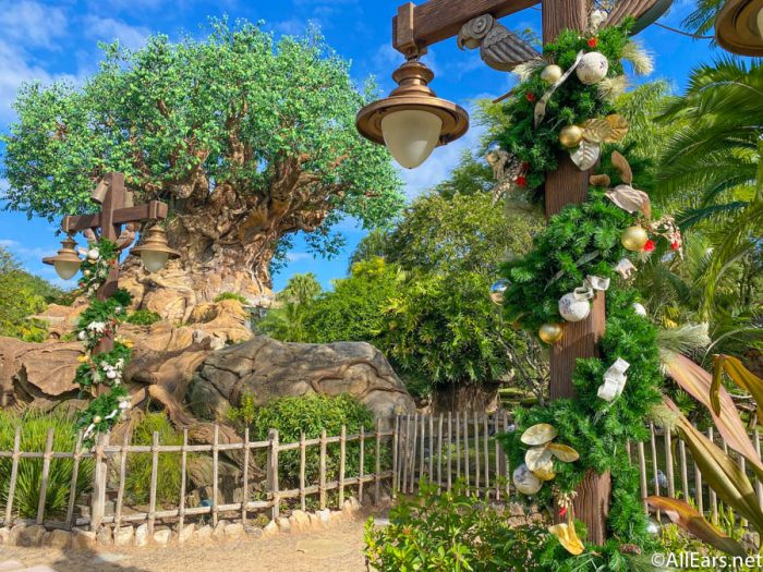 We’ve seen bits and pieces of Christmas start to make their way into the parks recently with the luminaries and lanterns appearing on Discovery Island. And, today, Disney’s Animal Kingdom has become a full-on Winter Wonderland as more decorations take over the park!