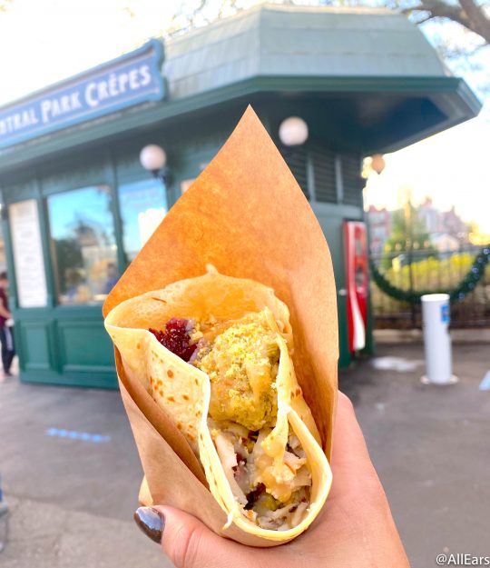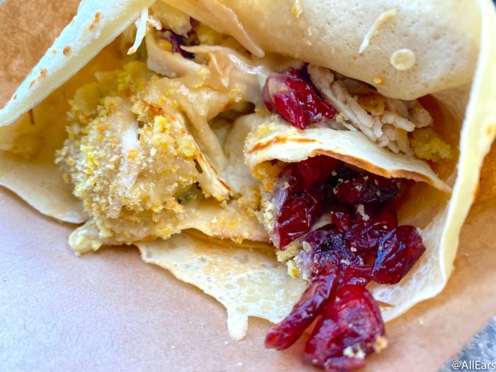 The Seasonal Thanksgiving Crêpe is only available for a limited time at the stand for $9.99 before the Annual Passholder discount, so you’ll want to head to the parks ASAP this week!