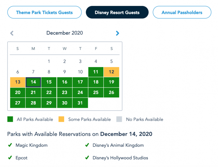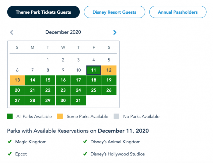 The same goes for Theme Park Ticket Guests, who may currently book a Park Pass Reservation at any of the four parks every day with the exception of this weekend.