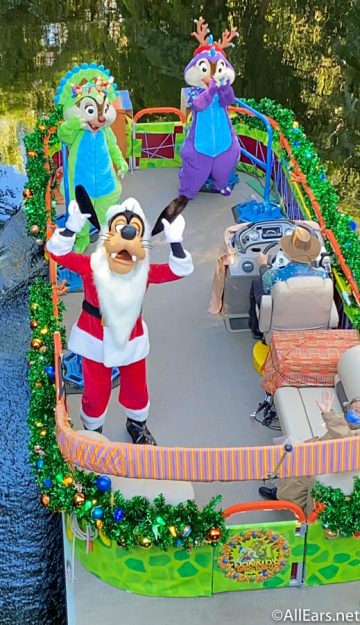During our visit to Disney’s Animal Kingdom today, we saw Santa Goofy, accompanied by his festively dressed pals Chip and Dale!