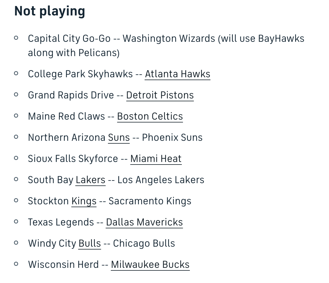 However, not every NBA G League team will be participating due to the hefty $400,000 to $500,000 price tag to send players to the bubble. 11 teams have chosen not to play, including: