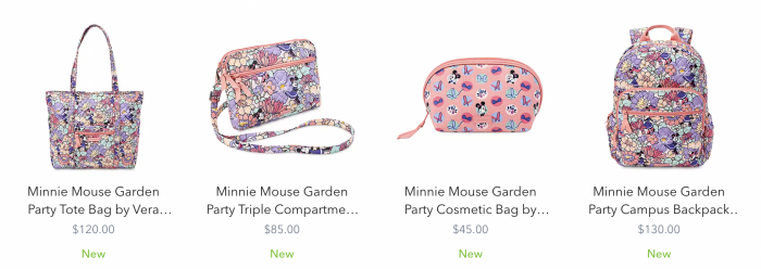 Or, you can pick up some of the New Minnie Mouse Garden Party Vera Bradley bags. Designer bags are definitely more affordable when one is free…right?