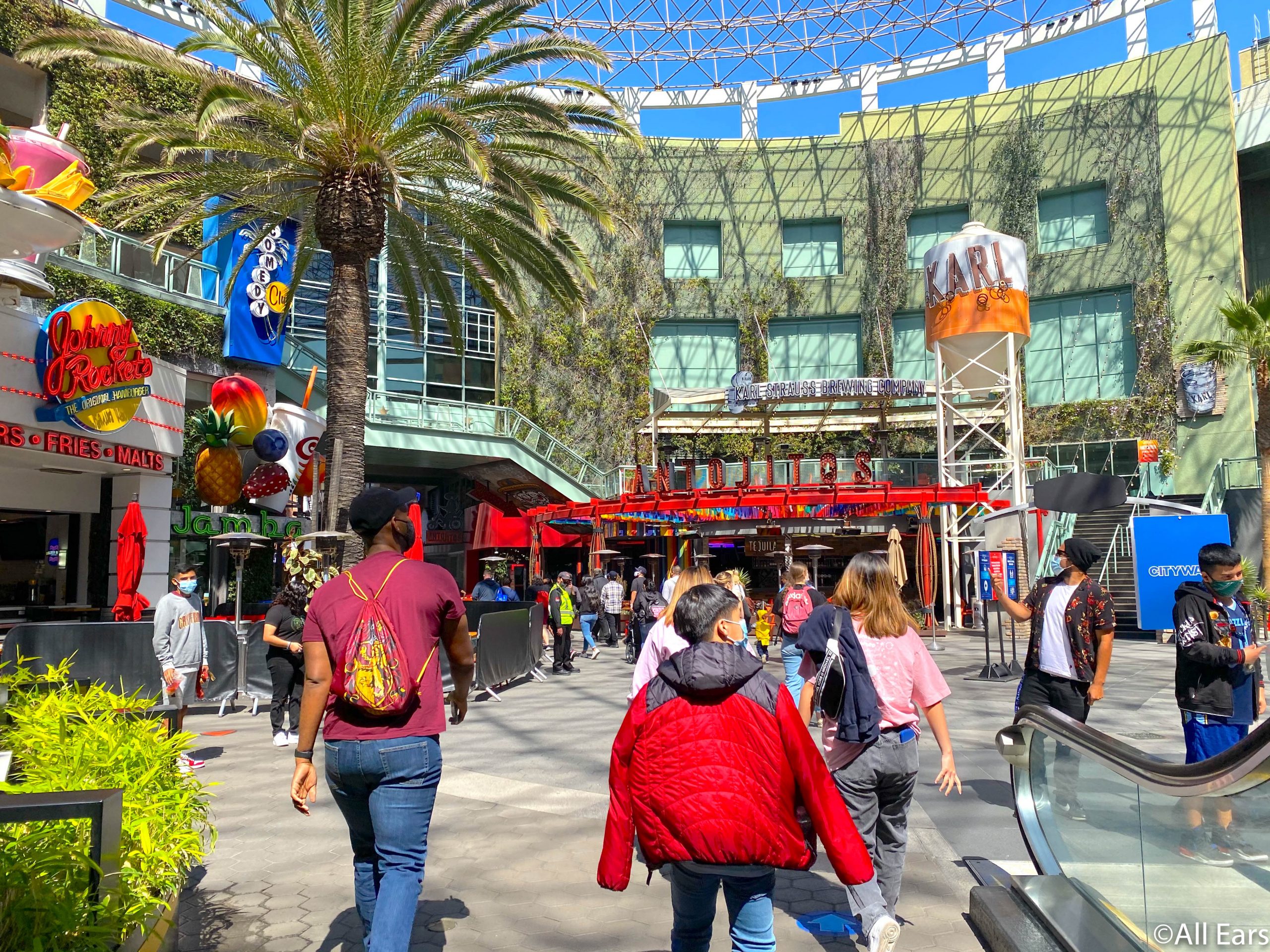 After we parked our cars in the garage and made our way into Universal’s CityWalk, guests remained distanced from one another after leaving the parking garage…