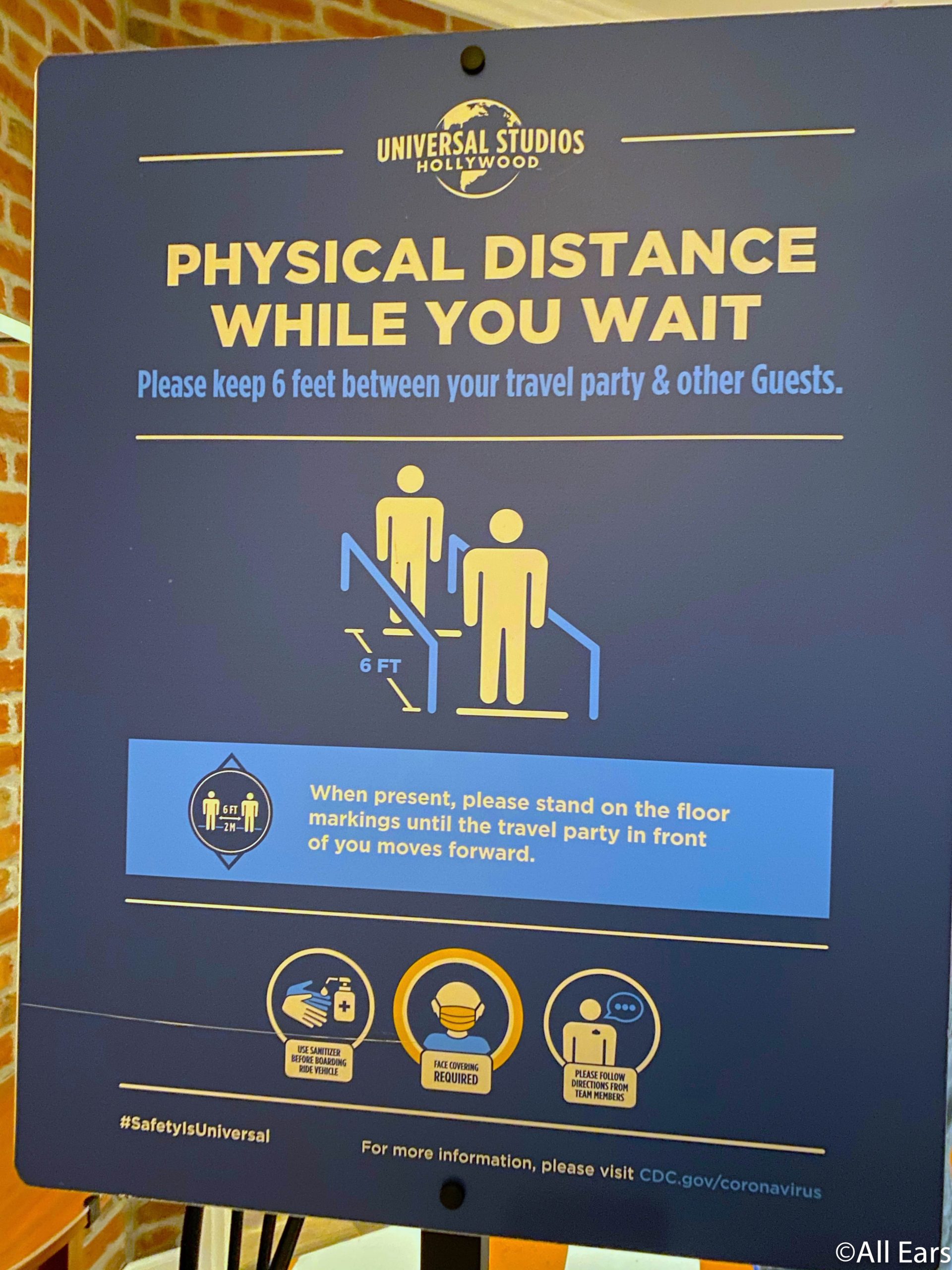 Prior to actually entering Universal Hollywood, signs placed around CityWalk enforced the physical distancing measures in place, mask mandates, and hand-washing stations.