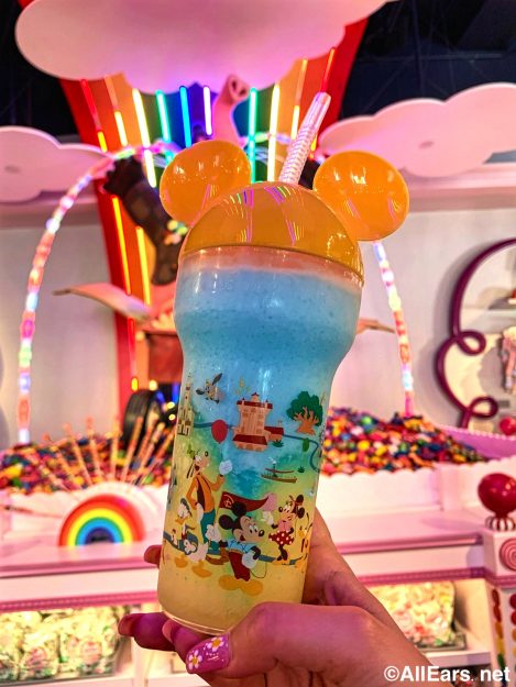 The sipper features Mickey and the gang along with iconic buildings like the Tower of Terror, Tree of Life, and other icons from Disneyland and Disney World!