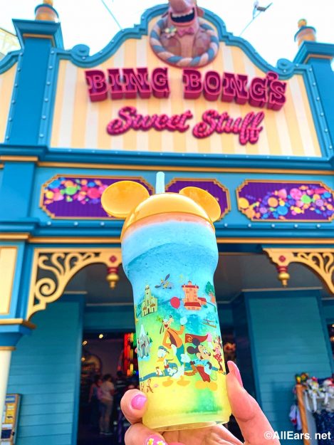 Previously we’ve seen the Mickey Ears Sipper in Disney World, but now it’s available in Disneyland! Available for $10.99, the Mickey souvenir cup is now at Bing Bong’s Sweet Stuff Confectionery. You can get a Memory Refresher slushie in it and enjoy a nice cool treat!
