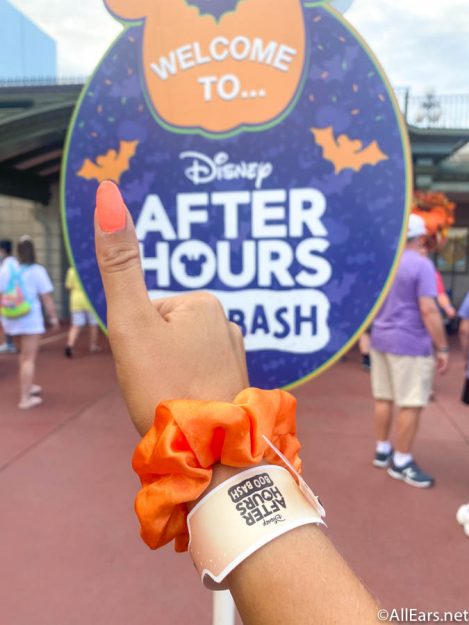 There weren’t too many people at the entrance gate with us, so we got through pretty quickly and a Cast Member put on our wristband to signify that we have tickets to BOO Bash and can stay in the park after 9:30PM.