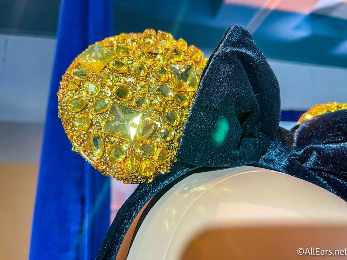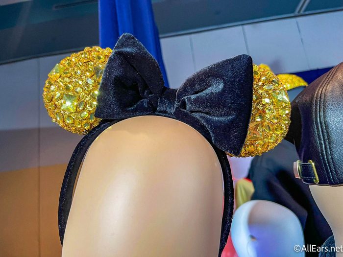 The new collection focuses on a black and gold color scheme, and it comes with two Minnie Ear Headbands and one Mickey Ear Hat, all three of which are decked out from top to bottom in glitter, sequins, rhinestones, and sparkle.