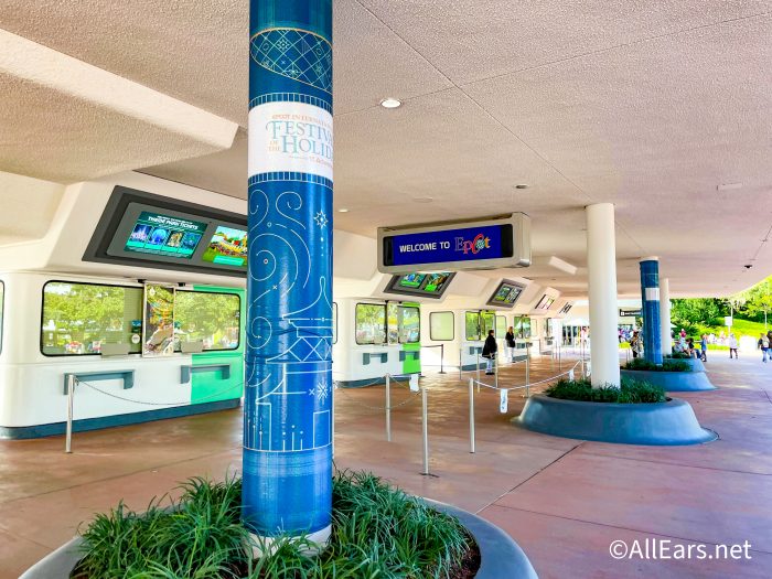 When we first arrived at EPCOT this morning, we were welcomed by Festival of the Holidays decorations at the ticketing center...