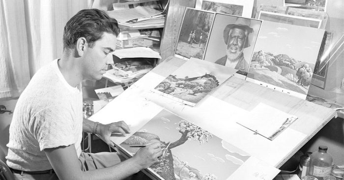 The epitome of a gentle giant, the 6-foot, 6-inch Coats not only preferred to be in the background when he worked, he flourished in it. In fact, he began his career with the Walt Disney Company painting background scenes for such Disney animation classics as Snow White and the Seven Dwarfs and Pinocchio.