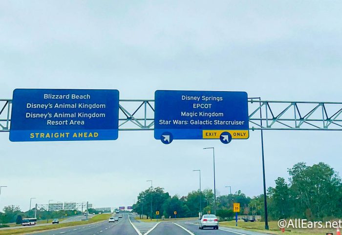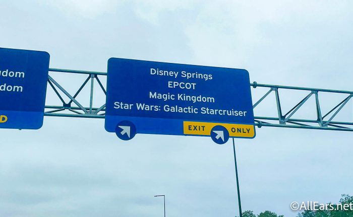 This exit was previously designated for Disney Springs, EPCOT, and Magic Kingdom, but now Star Wars: Galactic Starcruiser has joined the sign as well! The entrance to the hotel will be right around the corner.