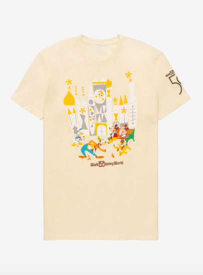 BoxLunch is having a buy-two-get-one-free sale right now, which includes some of their 50th Anniversary Disney World merchandise, so let’s take a loot at some of it! This “it’s a small world” shirt is available on BoxLunch now for $29.90!