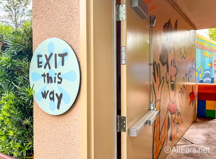 It looks like the set of doors to the right will be the entrance to the gift shop, but currently, they’re not open for guests. Right now, riders are still directed out the left set of exit doors to walk around the building. We’re excited about being one step closer to the store’s opening!