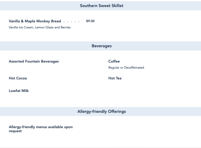 Breakfast service returned here today — September 2nd, 2022. The menu features some returning favorites like the Mark Twain. The monkey bread is also back, though this is a vanilla and maple variation.