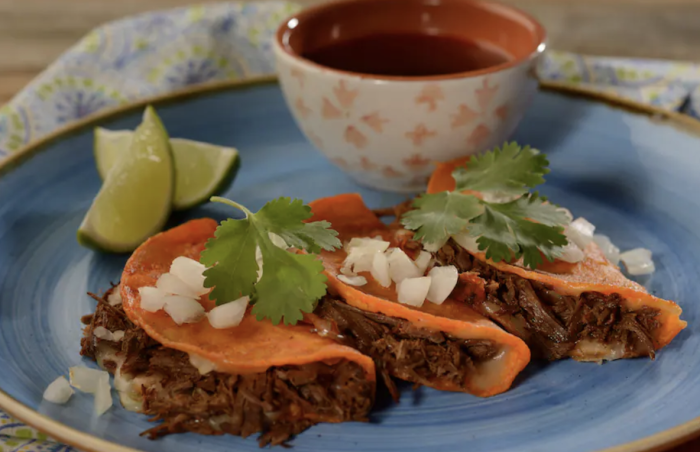 - Chef Verónica’s Birria Tacos: Birria tacos with beef, Monterrey Jack, onions, cilantro, and lime served with consommé (Available September 15th through October 15th)