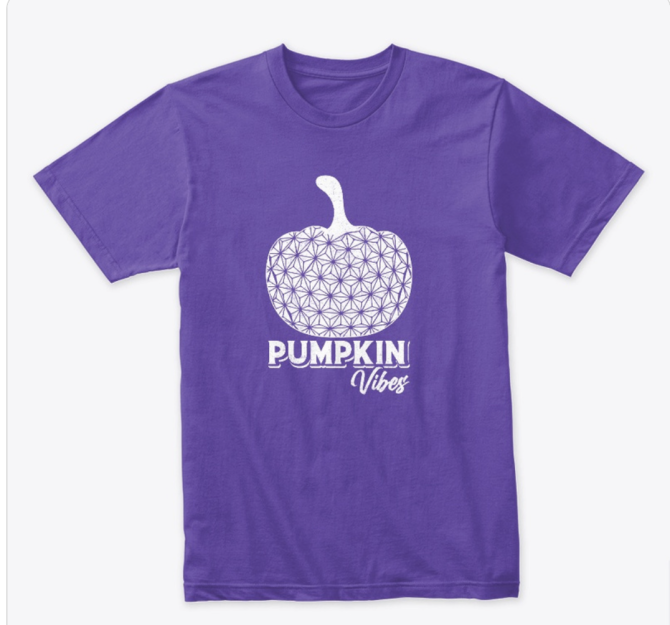 To start, I always pick my shirt first and build around that. For me, I like to focus on being comfortable while looking cute. Normally, that means a soft t-shirt like this purple Spaceship Earth Pumpkin Vibes Shirt.