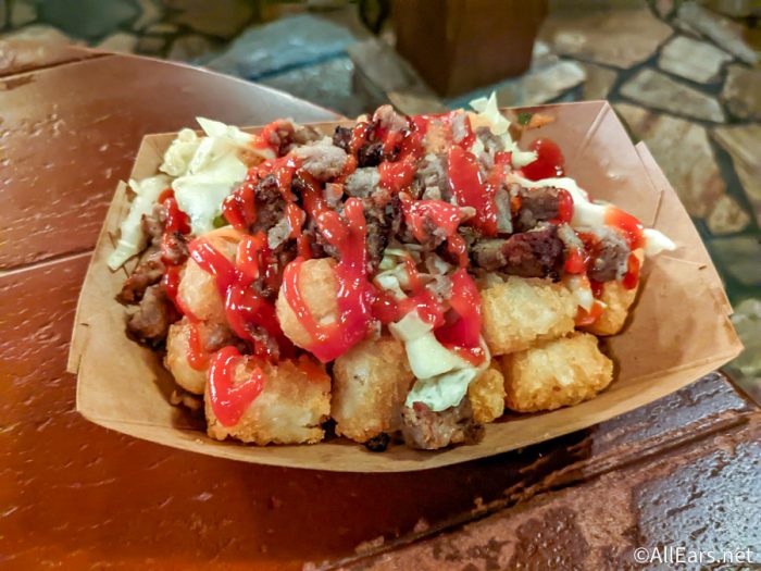 These are new and are tots topped with chopped bratwurst, curry ketchup, and apple slaw.