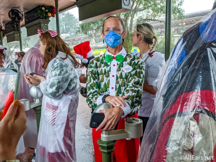 Even with the rain, characters are still out in their holiday best meeting and greeting guests! ?