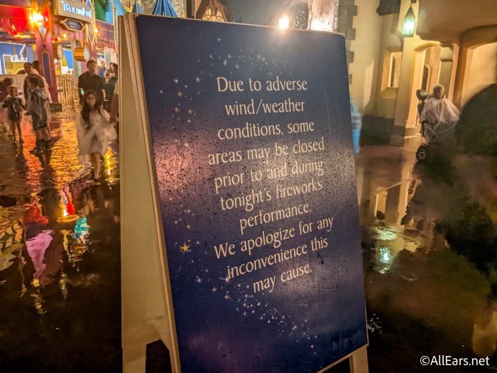 Several entertainment offerings including the Once Upon a Christmastime Parade and Mickey’s Most Merriest Celebration stage show were delayed due to the rain tonight. We’re hoping the show will be able to go on — Cast Members said the first parade was delayed until 9PM.