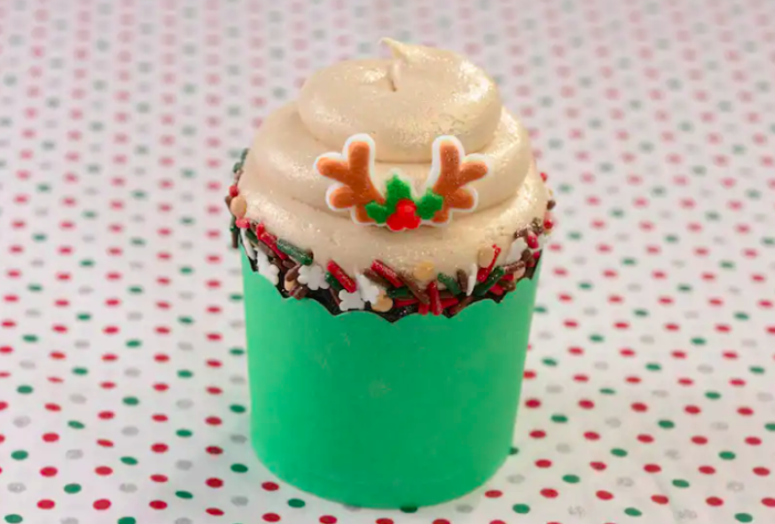 - Merry Mickey Cupcake: Traditional vanilla cupcake and vanilla buttercream with chocolate Mickey ears and holiday décor (New) (Available through Jan. 1)