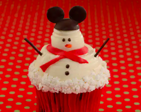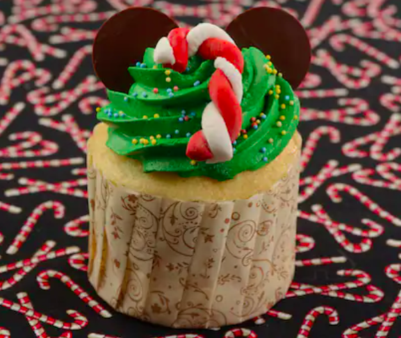 - Merry Mickey Cupcake: Traditional vanilla cupcake and vanilla buttercream with chocolate Mickey ears and holiday décor (New) (Available Nov. 1 through Jan. 1)