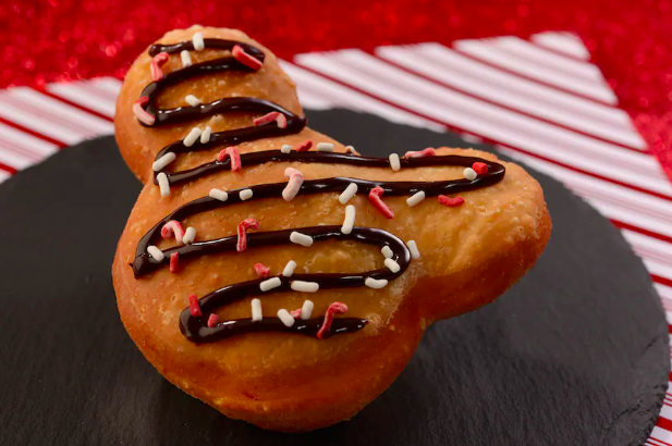 - Peppermint Mickey Beignet: Classic Mickey beignet topped with a peppermint ganache and candy cane quins (New)