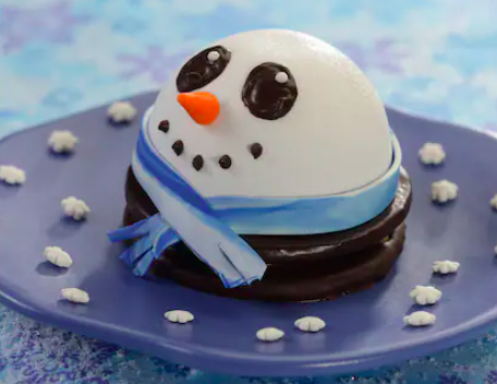 - Snowman Chocolate Marshmallow Pie: Graham cookie sandwiched with chocolate ganache and topped with a marshmallow snowman (New)