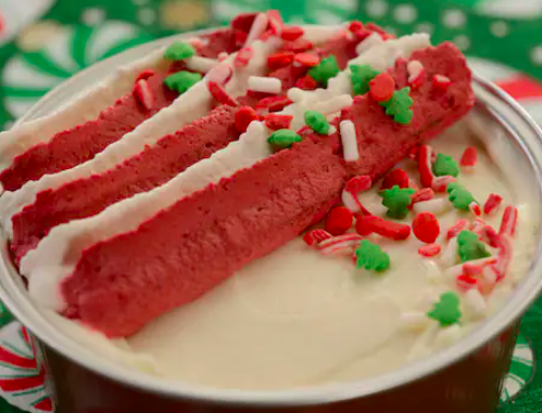 - Peppermint Brownie Cheesecake: Brownie base, peppermint cheesecake, and holiday sprinkles (New) (Available Dec. 1 through 26)