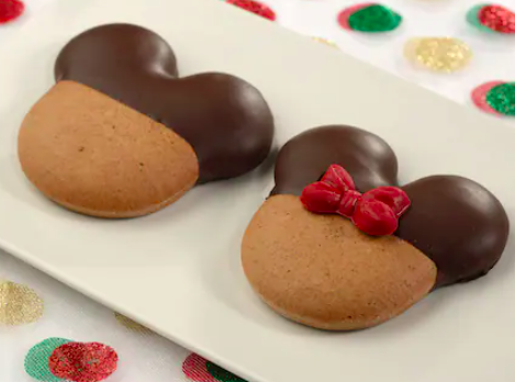 - Mickey and Minnie Gingerbread Cookies: Gingerbread cookies dipped in dark chocolate