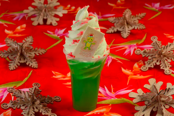 - ‘Olu Mel Christmas Float: DOLE Whip Lime Float with pineapple juice, an ‘Olu Mel white chocolate medallion, and strawberry popping candy (Wheat/ Gluten Friendly)