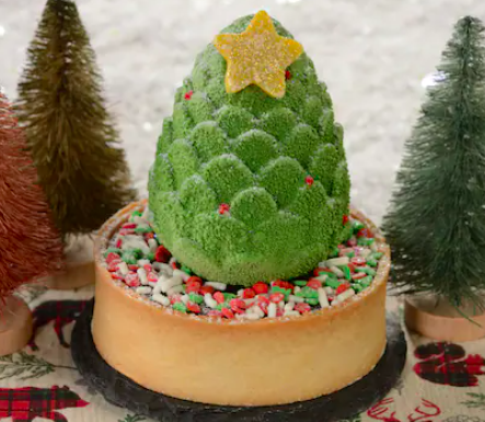 - Christmas Tree Mousse: White chocolate peppermint mousse, chocolate cake, and dark chocolate ganache in a vanilla tart shell (New) (Available Dec. 18 through 29)