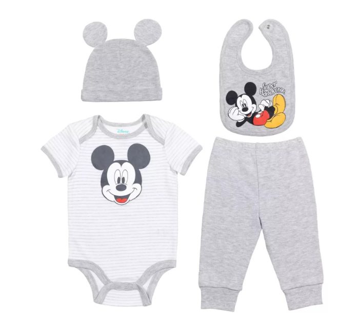 If you’re looking for a gift for new parents, check out Target’s baby clothes selection. They have a variety of adorable sets, like this Mickey Mouse 4 Piece Baby Outfit Set!