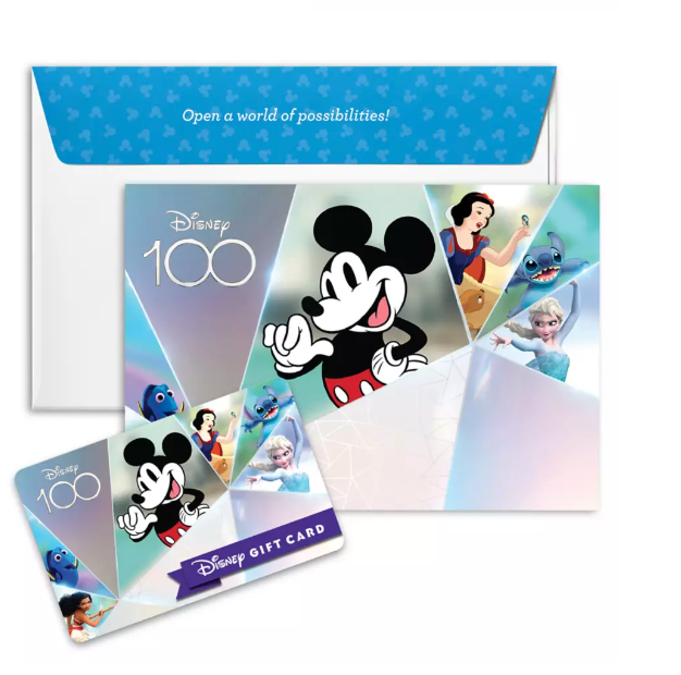 You can grab a Mickey Mouse and Friends Disney100 Disney Gift Card for whatever your heart desires. You can also grab an E-Gift Card as well.