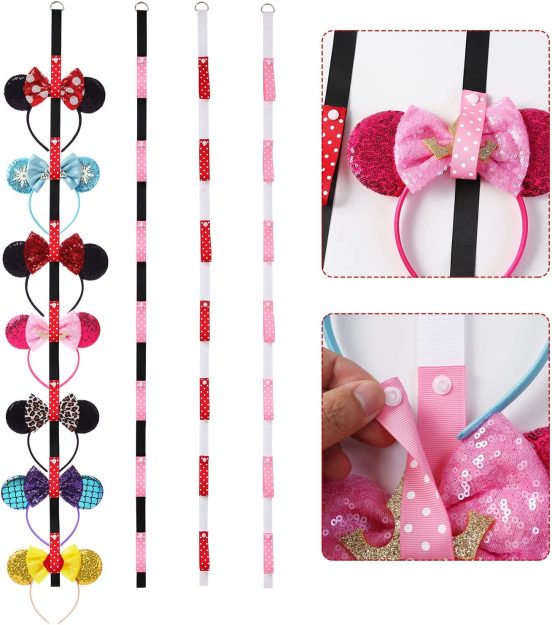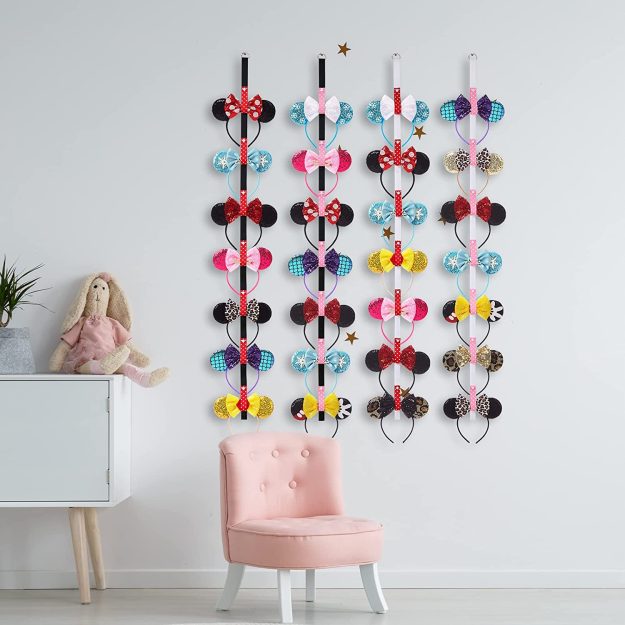 The pack comes with 4 ear holder strands that (together) can display up to 28 ears. Basically, all you’ll need to do is hang these holders up (you can put them on the back of a door or on a wall to make them more like decor) and then you’ll use the straps provided to secure your ears.