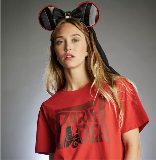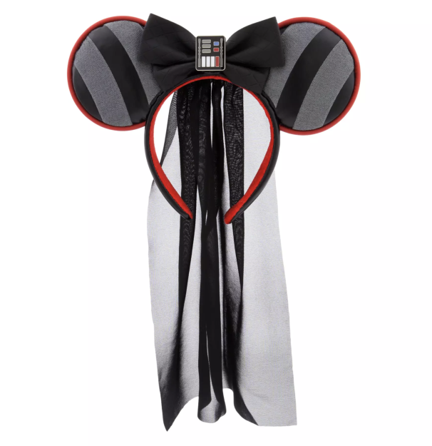 The Darth Vader Ears have made their way onto shopDisney! The ears themselves are striped with black and grey and have a red lining on the outside.