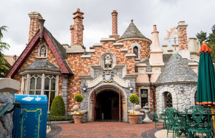 Toad Hall, in fact, is home to a fast-food restaurant in that park’s Fantasyland. The exterior of the building looks very much like the front of the Mr. Toad’s Wild Ride in Disneyland … complete with a figure of Mr. Toad above the entrance.