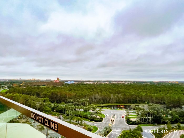 Tucked away in Disney’s Gran Destino Resort (which is part of Disney’s Coronado Springs Hotel), a quiet, unassuming little lounge serves some quality drinks and appetizers and offers some of the most UNIQUE views in Disney World. See that building off in the distance? That’s the Tower of Terror!