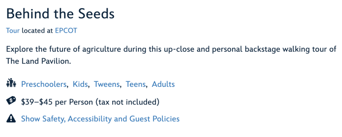For example, here is a look at the Behind the Seeds Tour. The price was $35 per person, but now it ranges from $35 to $45.