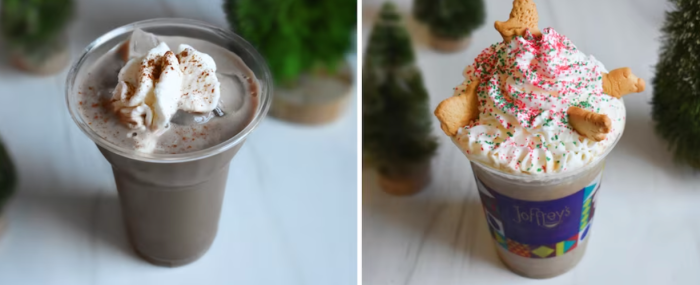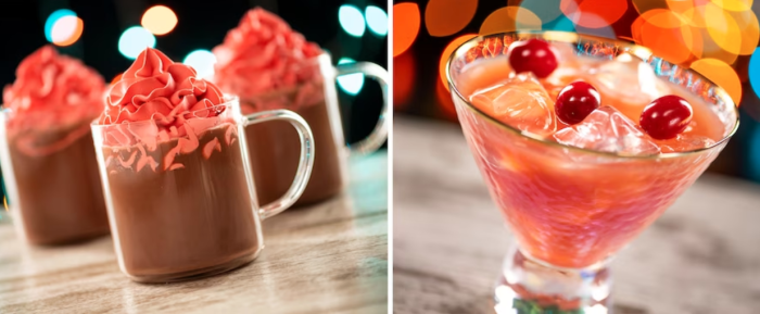 - Sandy Claws Hot Cocoa: “Tim Burton’s The Nightmare Before Christmas”-inspired dark chocolate hot cocoa topped with cherry whipped cream (Non-alcoholic)