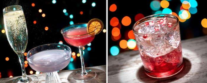 - Mistletoe Martini: Tito’s Handmade Vodka and St. Germain Elderflower Liqueur mixed with cranberry juice and topped with fresh cranberries and mint leaves