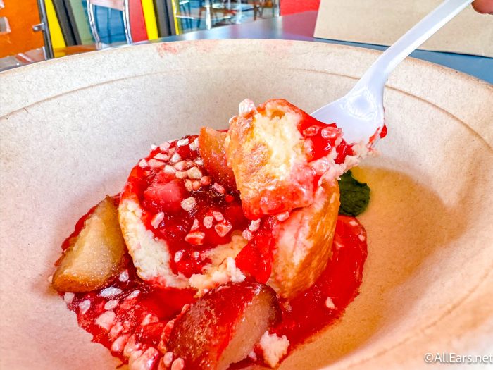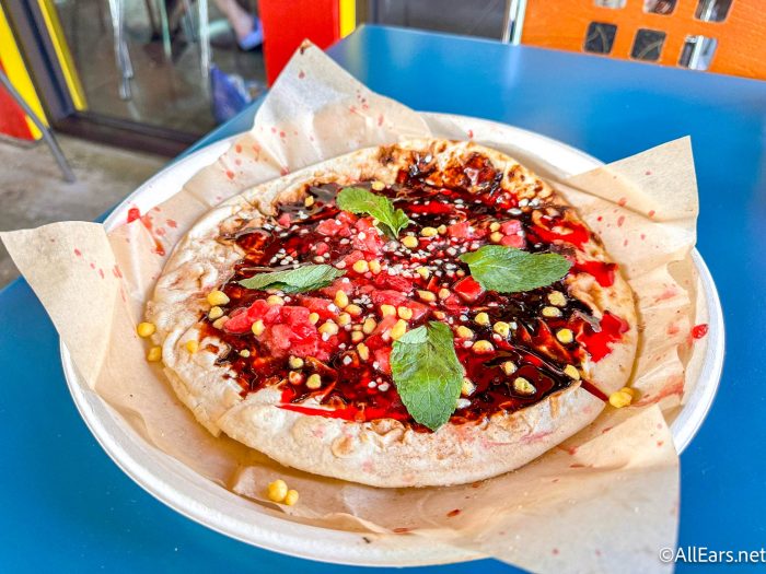 We’ll be honest here — this was probably our least favorite thing we ate. The sauce is very messy and makes it hard to eat, which is exacerbated because the slices are massive. The fresh fruit and mint on top were nice, but the flavors from the sauces just weren’t as compelling as they could be.