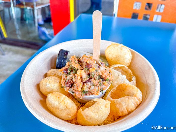 EET is a new counter service restaurant located in Disney Springs in The Marketplace section. It’s owned by celebrity chef Maneet Chauhan (you may know her from Chopped on The Food Network!). Here, they serve casual Indian cuisine!