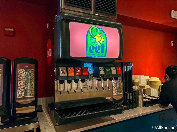Once you’ve placed your order, there’s a self-serve drink station off to the side. Like other Disney restaurants, they serve Coke products.