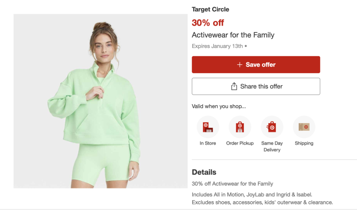 Right now, you can save 30% off activewear at Target! This is a fantastic sale for those planning summer vacations, those who enjoy going to the gym or running, and everyone who just loves athletic apparel. You need to be a Target Circle member, which is free to join!